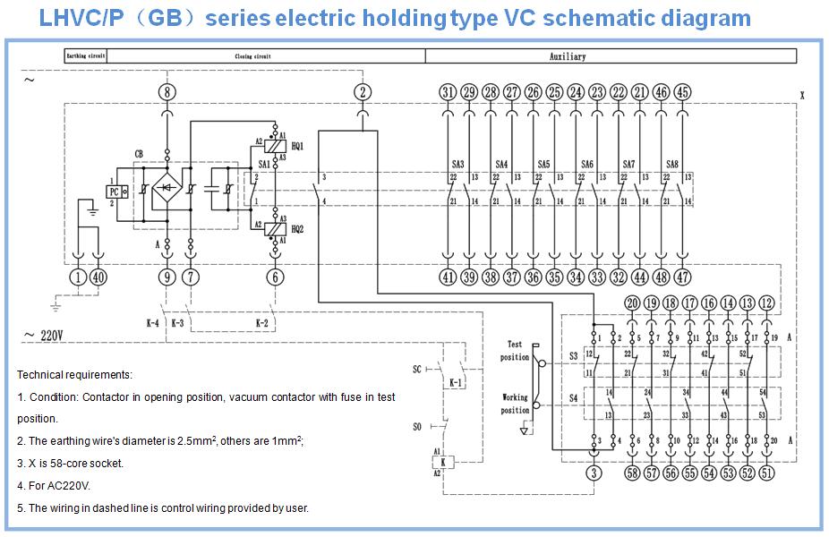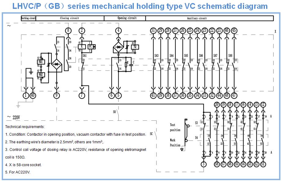 LHVC7/LHVC12 mechanical holding type secondary control diagram